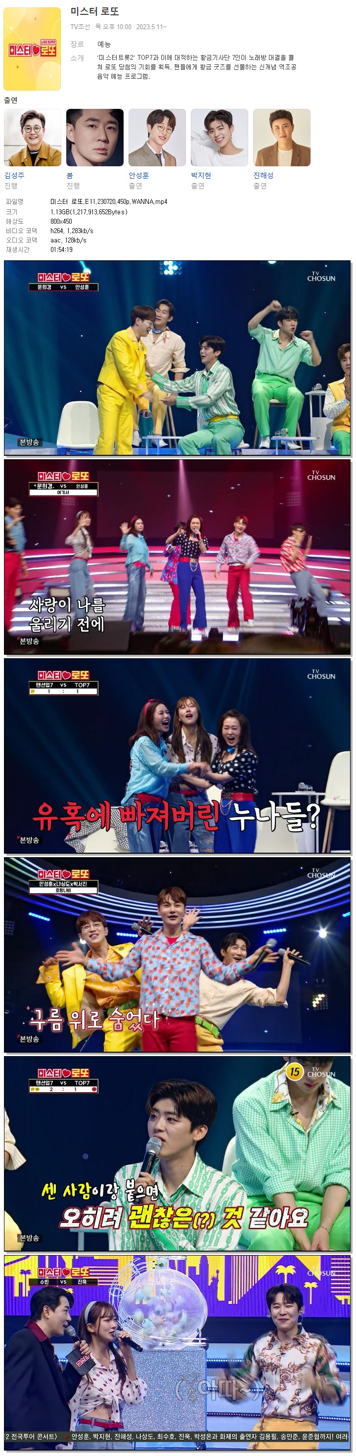 | 미스터 로또.E11.230720.450p.WANNA.mp4 | 1.1 G | 01:54:19 | 800x450 |