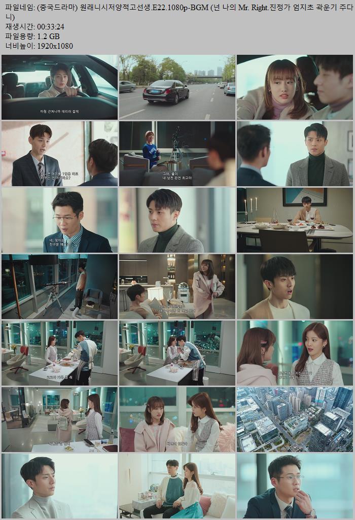 | (중국드라마) 원래니시저양적고선생.E22.1080p-BGM (넌 나의 Mr. Right.진정가 엄지초 곽운기 주다니).mp4 | 1.2 G | - | 1920x1080 |