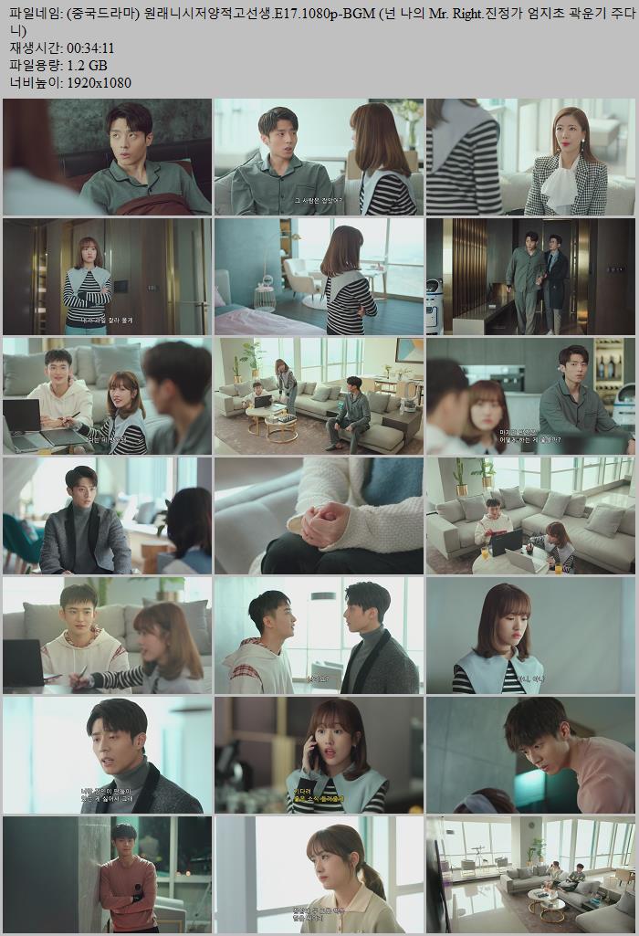 (중국드라마) 원래니시저양적고선생.E17.1080p-BGM (넌 나의 Mr. Right.진정가 엄지초 곽운기 주다니) 다시보기 토렌트