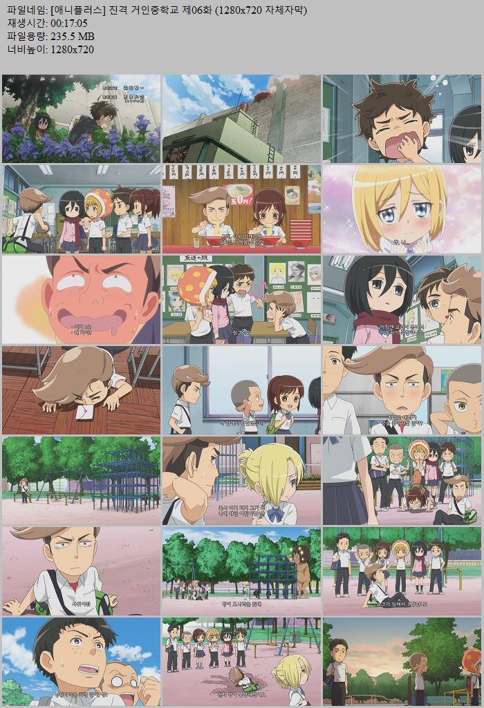 | [애니플러스] 진격! 거인중학교 제06화 (1280x720 자체자막).mp4 | 235.5 M | - | 1280x720 |