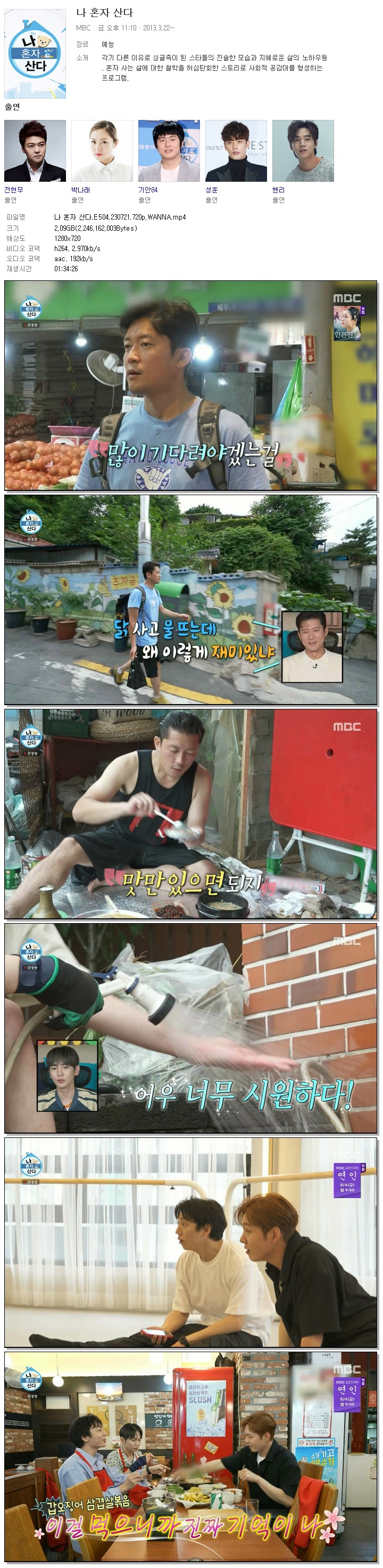 | 나 혼자 산다.E504.230721.720p.WANNA.mp4 | 2.1 G | 01:34:26 | 1280x720 |