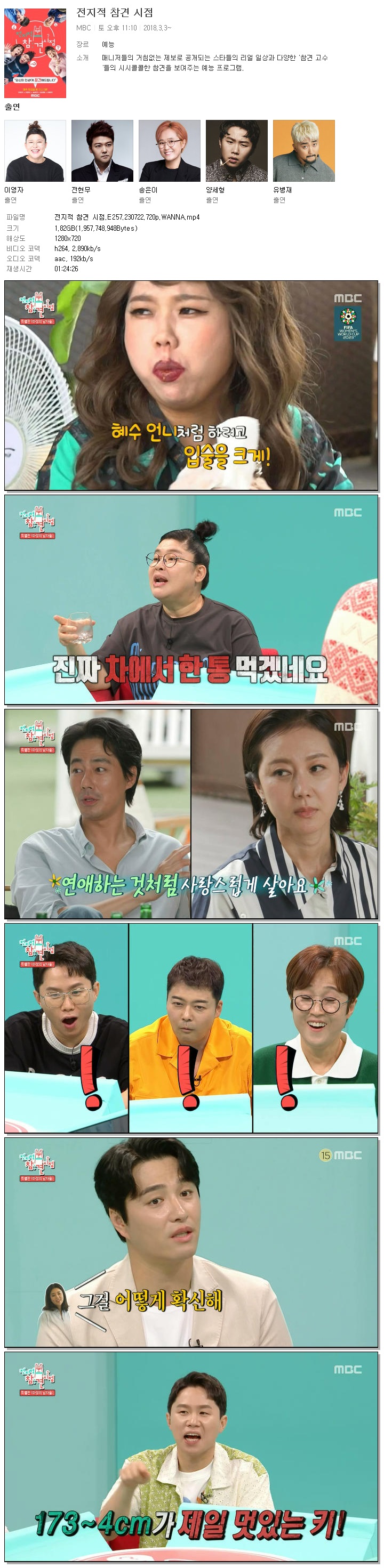 | 전지적 참견 시점.E257.230722.720p.WANNA.mp4 | 1.8 G | 01:24:26 | 1280x720 |