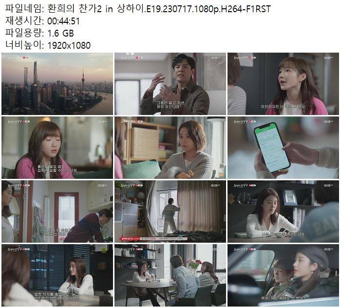 | 환희의 찬가2 in 상하이.E19.230717.1080p.H264-F1RST.mp4 | 1.6 G | 00:44:51 | 1920x1080 |