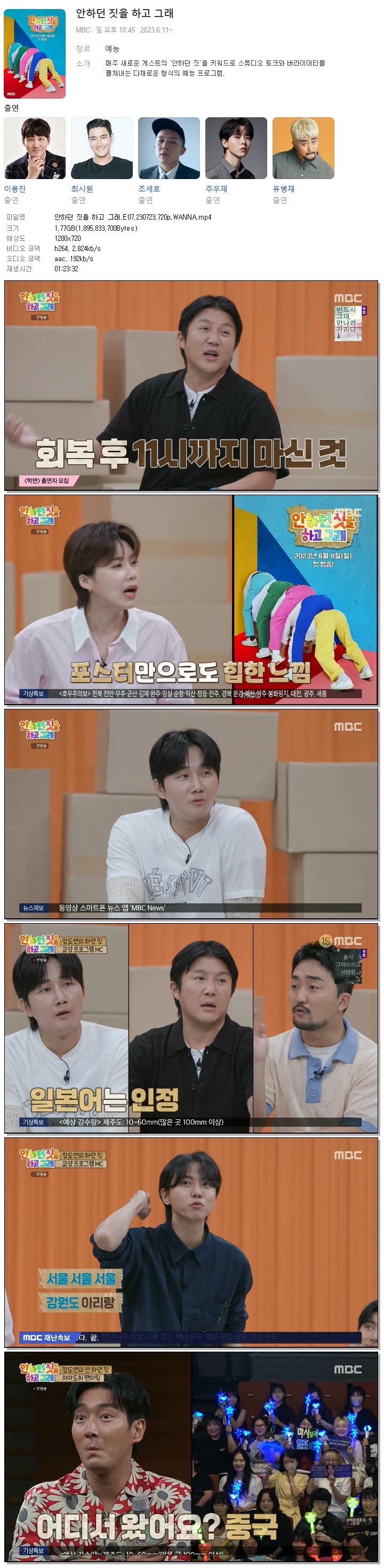 | 안하던 짓을 하고 그래.E07.230723.720p.WANNA.mp4 | 1.8 G | 01:23:32 | 1280x720 |