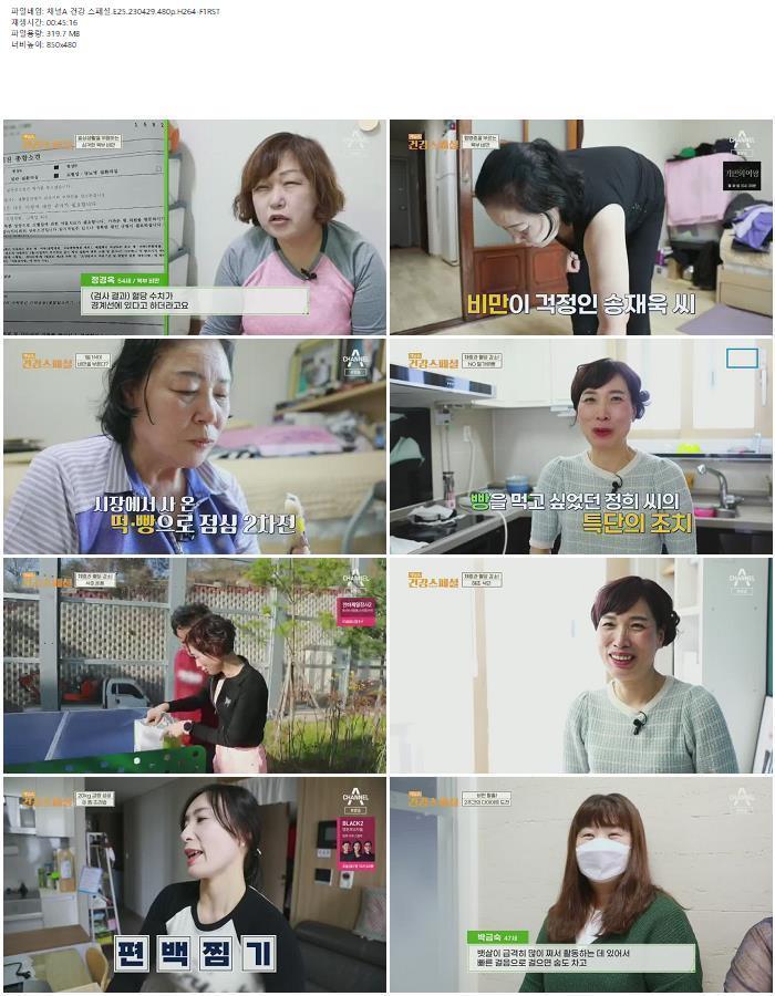 | 채널A 건강 스페셜.E25.230429.480p.H264-F1RST.mp4 | 319.7 M | - | 850x480 |