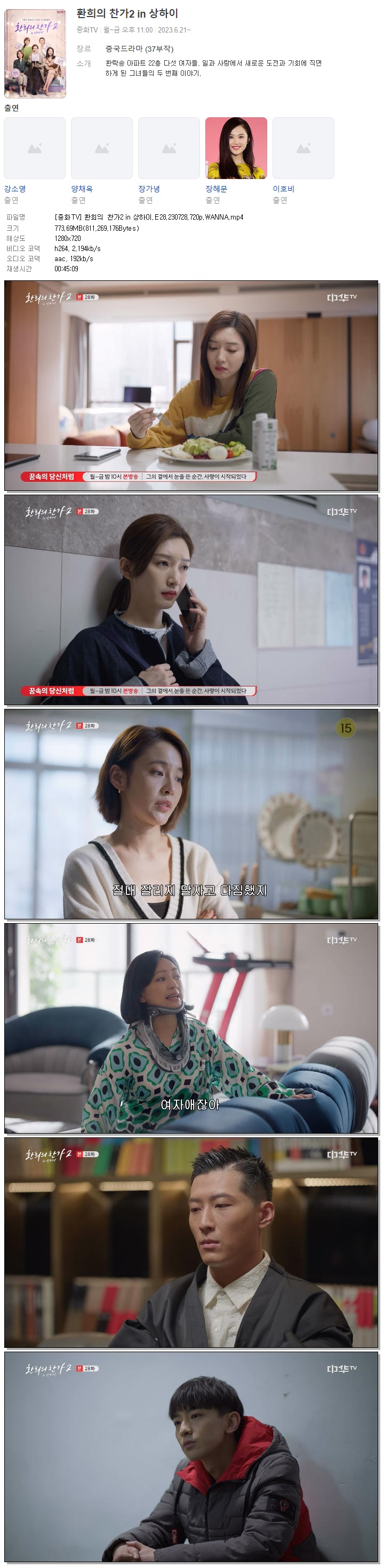 | [중화TV] 환희의 찬가2 in 상하이.E28.230728.720p.WANNA.mp4 | 773.7 M | 00:45:09 | 1280x720 |