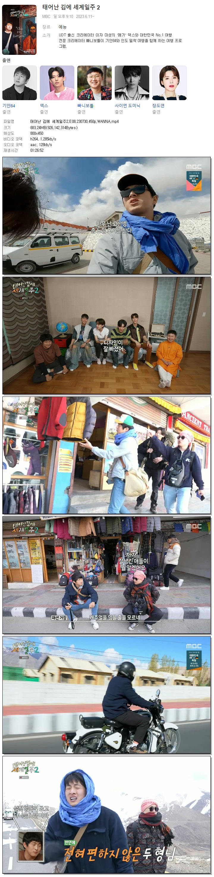 | 태어난 김에 세계일주2.E08.230730.450p.WANNA.mp4 | 883.2 M | 01:26:52 | 800x450 |