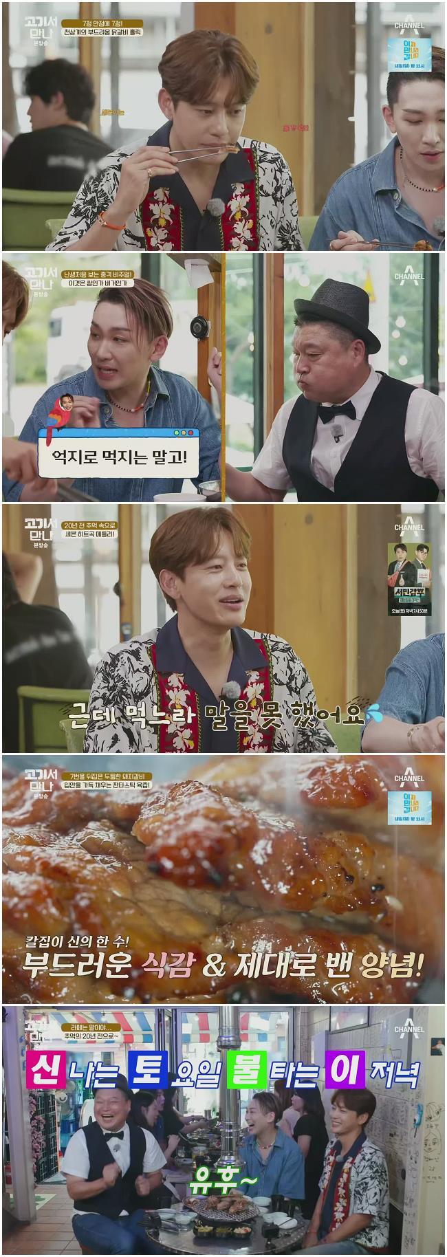 트롯돌 섭외 대성공! 진해성 누님 부대 시청률 부흥을 위해 시장 한가운데서 노래시키기 우렁찬 리액션으로 누님 부대 놀라서 쓰러지게 만들기 과즙미 자랑을 위해 '직접' 착즙하기 고기서 만나 : 부속 샤부샤부 그리고 해성의 원맨쇼