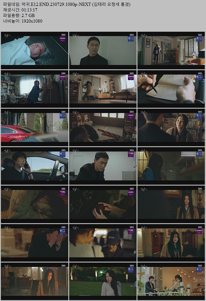 | 악귀.E12.END.230729.1080p-NEXT (김태리 오정세 홍경).mp4 | 2.7 G | - | 1920x1080 |