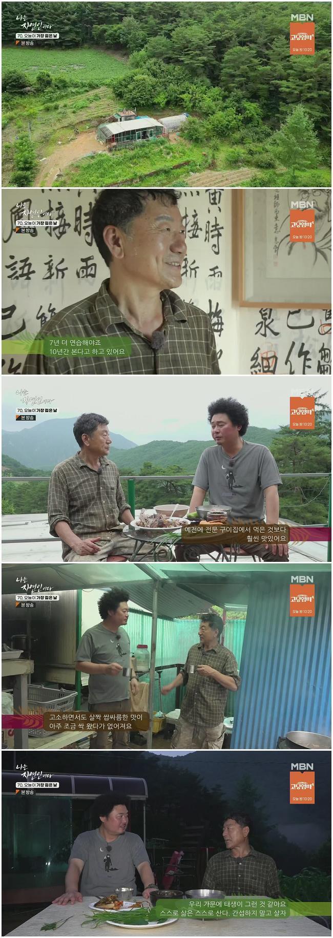 다 가졌다, 젊음은 덤 자연인 박태선. 박태선 씨는 이 땅에 들어오고 나서부터 15년째 자신의 터전을 열심히 가꾸어 나가고 있다. 비록 남 보기에는 소박한 환경일 수 있겠지만 박태선 씨는 그 누구보다 만족하며 행복을 느낀다. 심지어 이렇게 열심히 공간을 가꾸다 보니 젊음은 덤으로 찾아온 것이 아닌가. 공기 좋은 환경과 일상을 함께하는 사랑이와 냥이. 게다가 아내의 잔소리를 듣지 않아도 되니 점입가경이라고 웃으면서 말한다. "가질 거는 다 가졌다. 지금부터 욕심을 부리면 내 욕심이지".