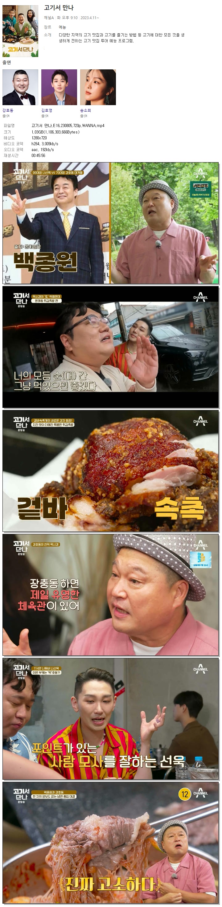 | 고기서 만나.E16.230805.720p.WANNA.mp4 | 1 G | 00:45:56 | 1280x720 |