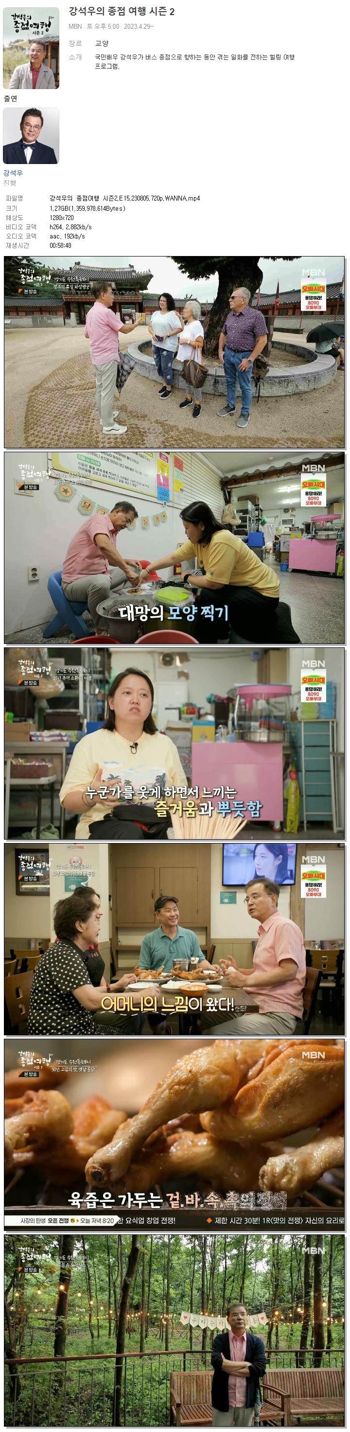 | 강석우의 종점여행 시즌2.E15.230805.720p.WANNA.mp4 | 1.3 G | 00:58:48 | 1280x720 |