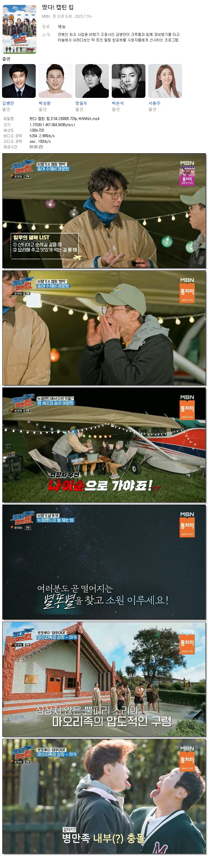 | 떴다 캡틴 킴.E04.230805.720p.WANNA.mp4 | 1.4 G | 01:01:23 | 1280x720 |