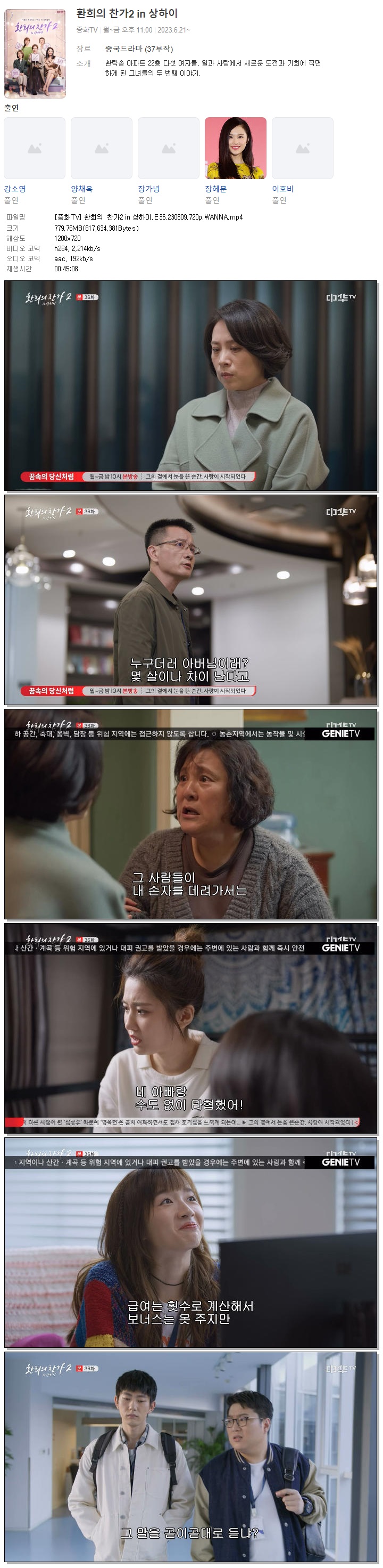 [중화TV] 환희의 찬가2 in 상하이.E36.230809.720p.WANNA.mp4 779.8 M 00:45:08 1280x720