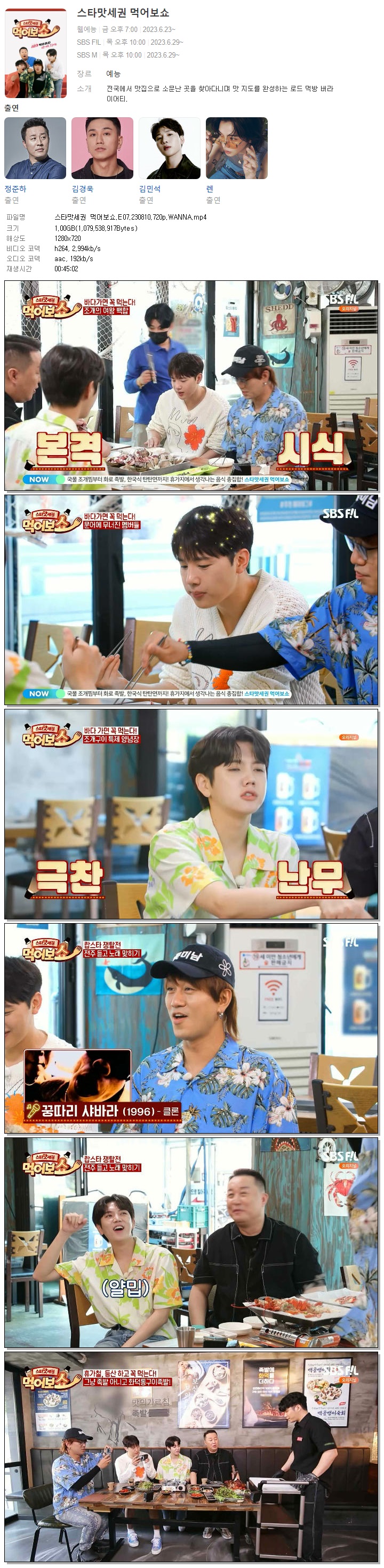 | 스타맛세권 먹어보쇼.E07.230810.720p.WANNA.mp4 | 1 G | 00:45:02 | 1280x720 |