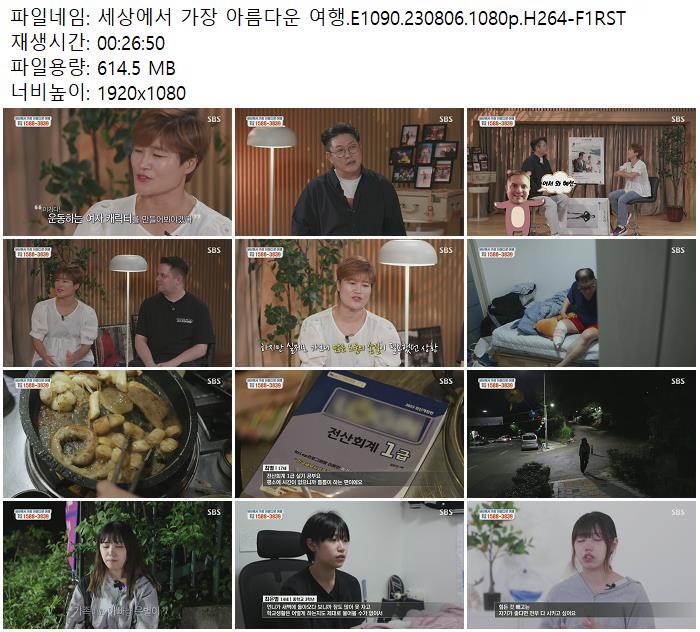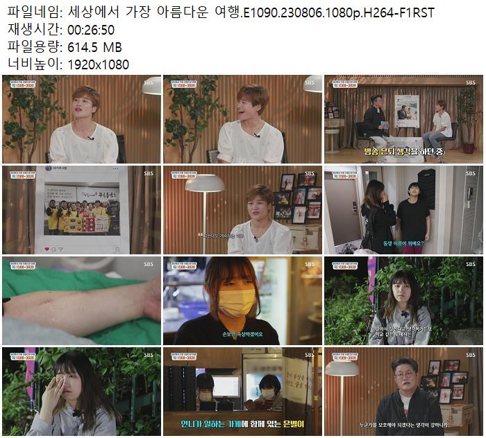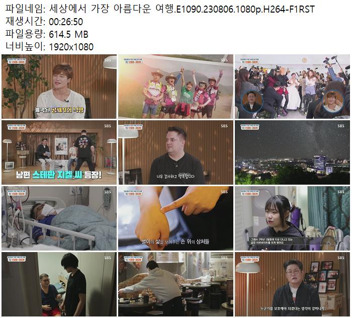 | 세상에서 가장 아름다운 여행.E1090.230806.1080p.H264-F1RST.mp4 | 614.5 M | - | 1920x1080 |