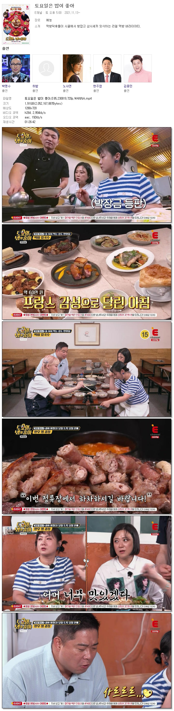 토요일은 밥이 좋아.E85.230819.720p.WANNA 다시보기 토렌트