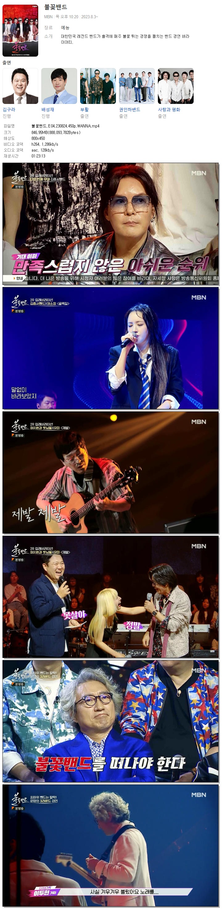 | 불꽃밴드.E04.230824.450p.WANNA.mp4 | 847 M | 01:23:13 | 800x450 |