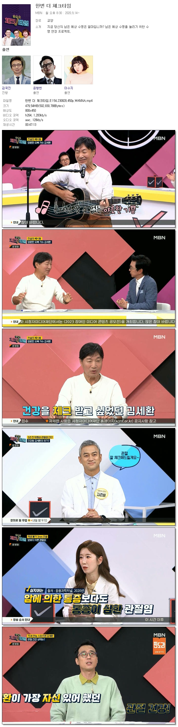 | 한번 더 체크타임.E154.230828.450p.WANNA.mp4 | 479.5 M | 00:47:13 | 800x450 |