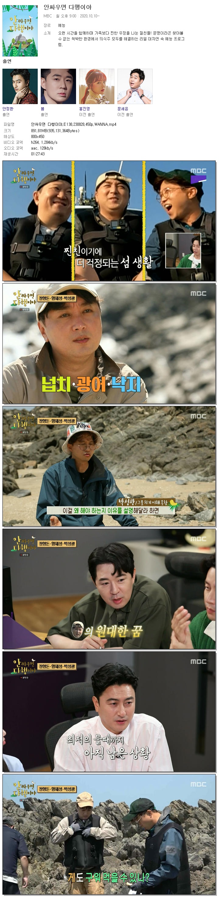 장민호 X 김지석 X 윤태영, 꼬꼬마 선장 양세형과 함께 무인도 출격! 설레는 마음과 달리 비 내리는 오늘... 이들의 운명은?! "전후좌우 이상 무!" 안다행 최초 직접 배 운전해 입도하다?! 장민호의 찐친들! 김지석 X 윤태영, 그리고 꼬꼬마 선장 양세형! 이.어.서 바위 사이사이~ 살펴보다 사람 뇌(?) 발견한 엉뚱 순수 태영! 한편, 어렵게 잡은 생선을 놓쳐버리는 초유의 사태 발생. 결국 다 함께 손잡고 물속 달리기까지 해보는데... "머릿속에서 맛이 그려져요." 연예계 대표 요리 대가, 무인도에서는 '양 셰프'로 등극! 형들을 지휘하며 한 상 푸짐하게 채운 내손내잡 밥상.