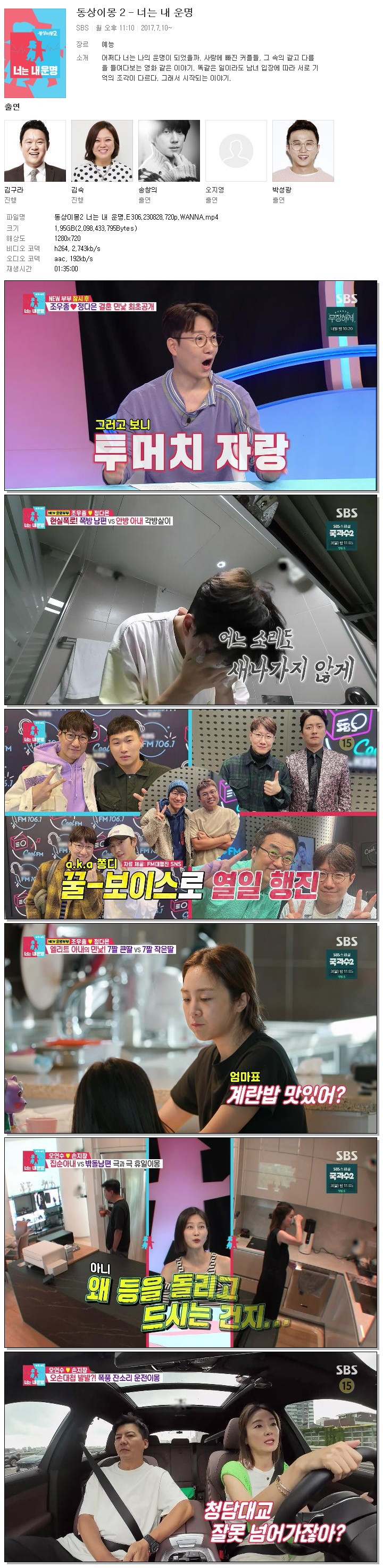 | 동상이몽2 너는 내 운명.E306.230828.720p.WANNA.mp4 | 2 G | 01:35:00 | 1280x720 |