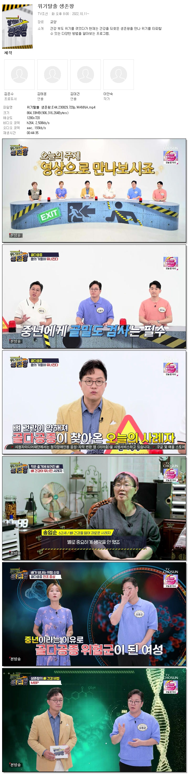 | 위기탈출 생존왕.E44.230829.720p.WANNA.mp4 | 864.3 M | 00:44:35 | 1280x720 |