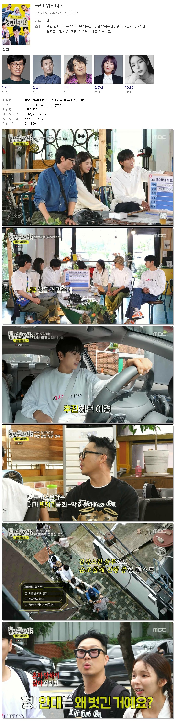 | 놀면 뭐하니.E199.230902.720p.WANNA.mp4 | 1.6 G | 01:12:29 | 1280x720 |