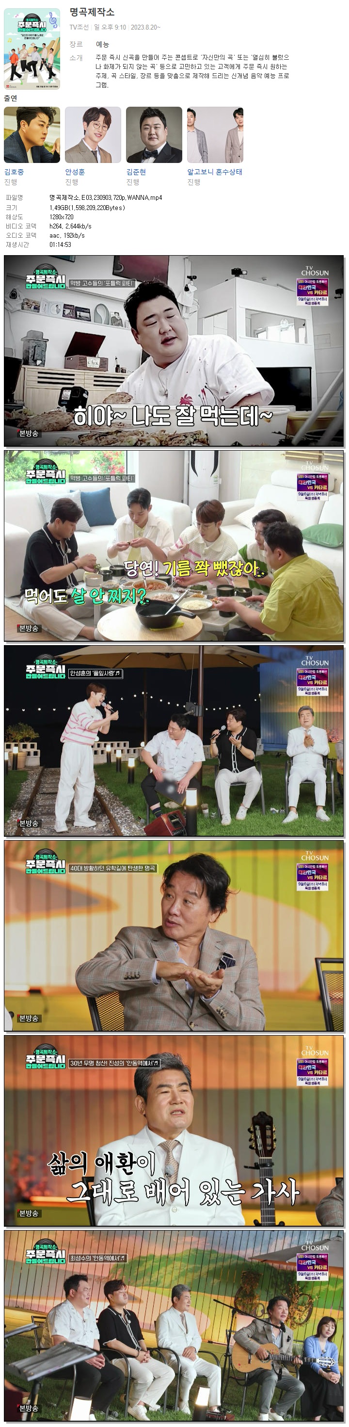 | 명곡제작소.E03.230903.720p.WANNA.mp4 | 1.5 G | 01:14:53 | 1280x720 |