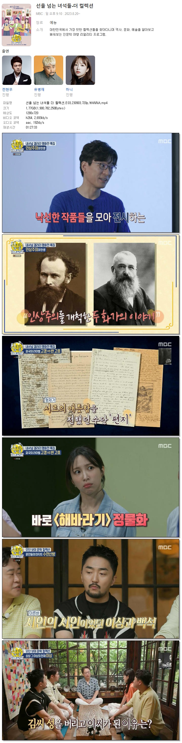 | 선을 넘는 녀석들 더 컬렉션.E03.230903.720p.WANNA.mp4 | 1.8 G | 01:27:33 | 1280x720 |