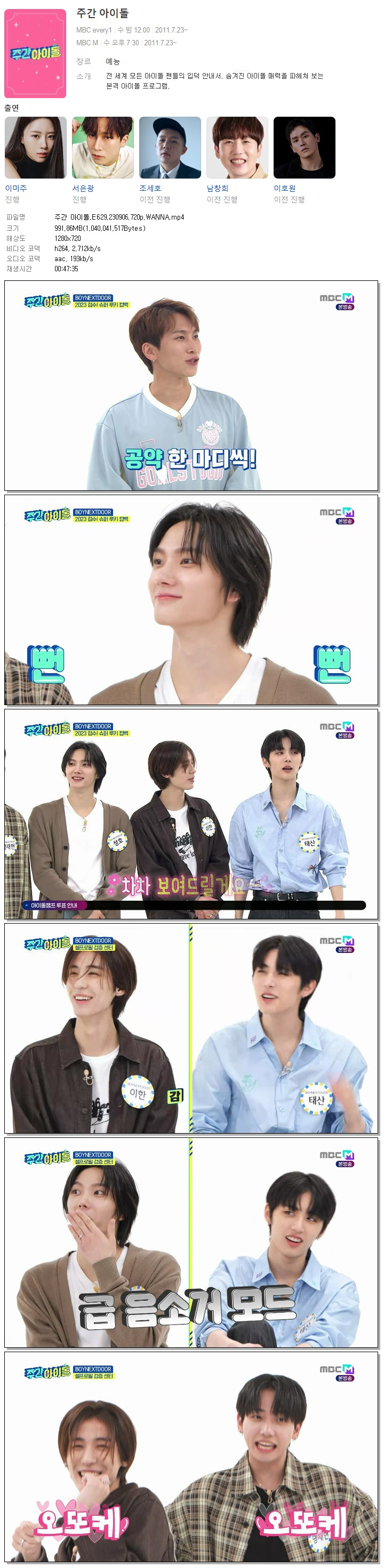 주간 아이돌.E629.230906.720p.WANNA.mp4 991.9 M 00:47:35 1280x720