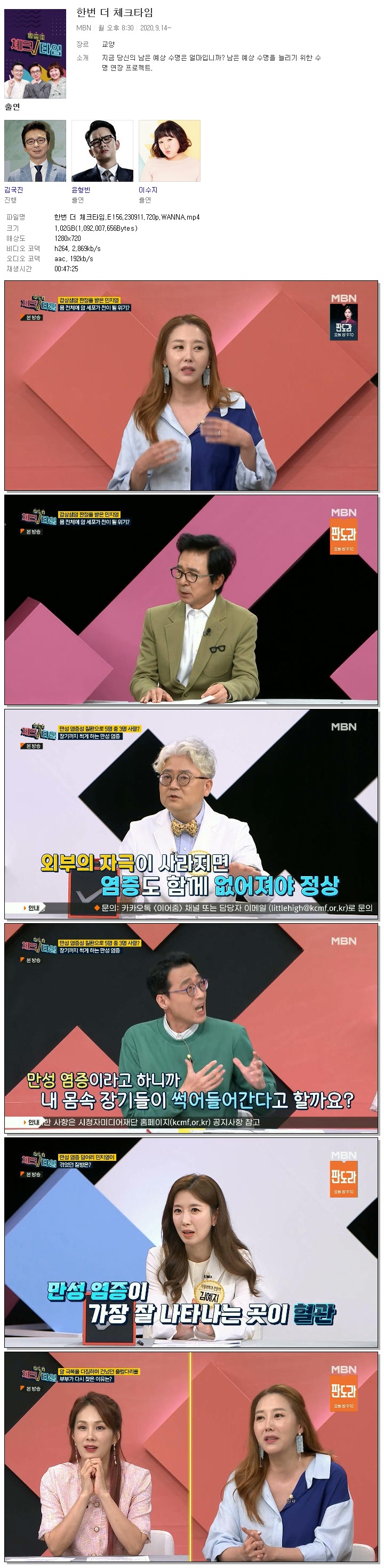 | 한번 더 체크타임.E156.230911.720p.WANNA.mp4 | 1 G | 00:47:25 | 1280x720 |