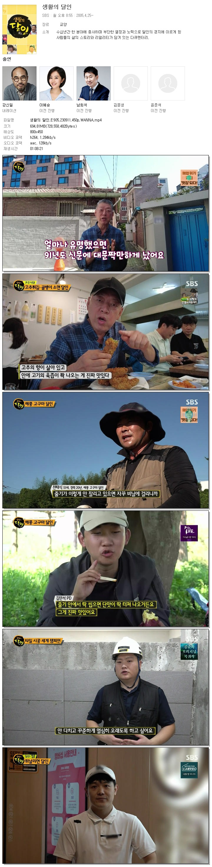 | 생활의 달인.E905.230911.450p.WANNA.mp4 | 694.8 M | 01:08:21 | 800x450 |