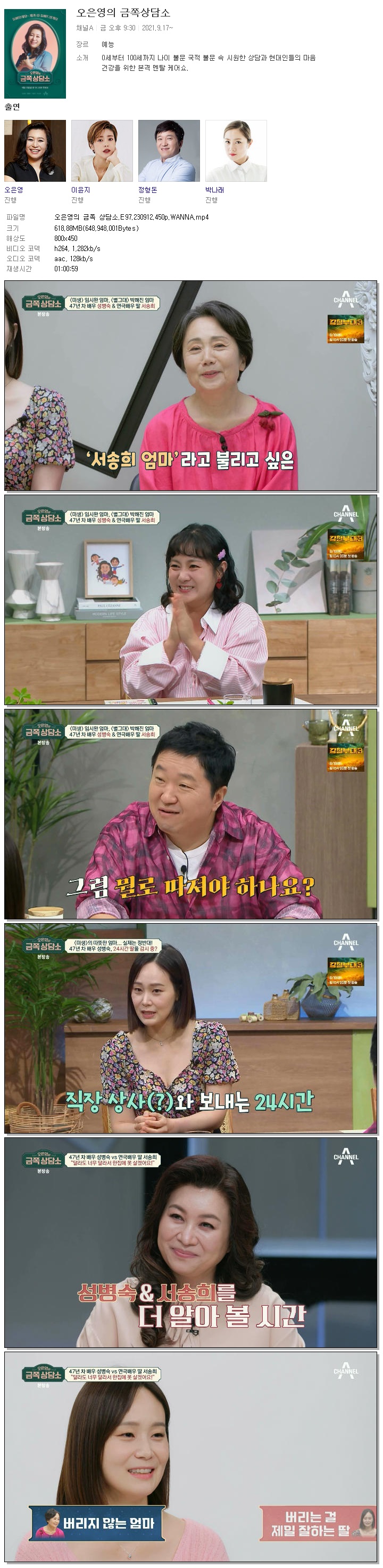 | 오은영의 금쪽 상담소.E97.230912.450p.WANNA.mp4 | 618.9 M | 01:00:59 | 800x450 |