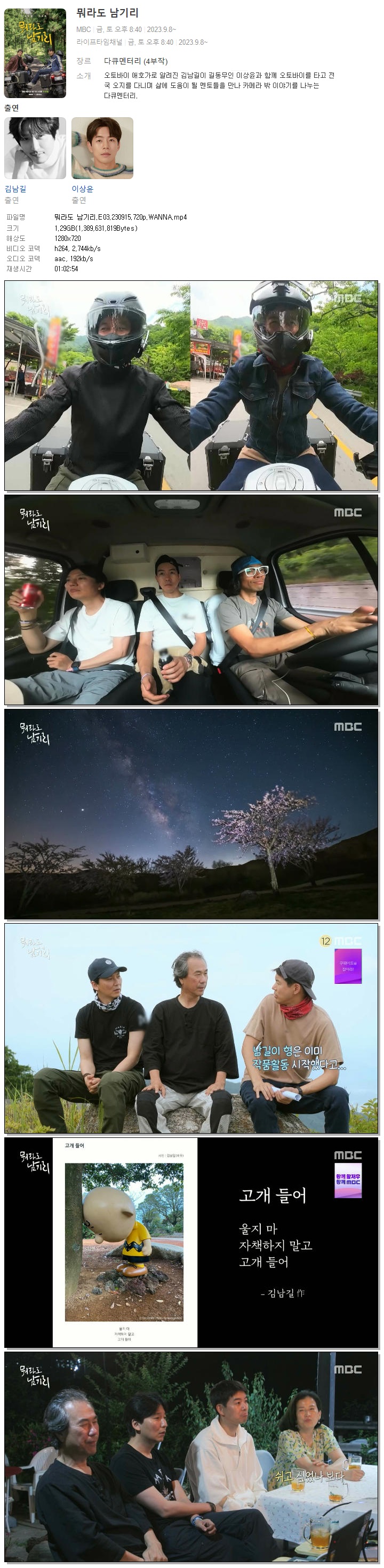 뭐라도 남기리.E03.230915.720p.WANNA.mp4 1.3 G 01:02:54 1280x720