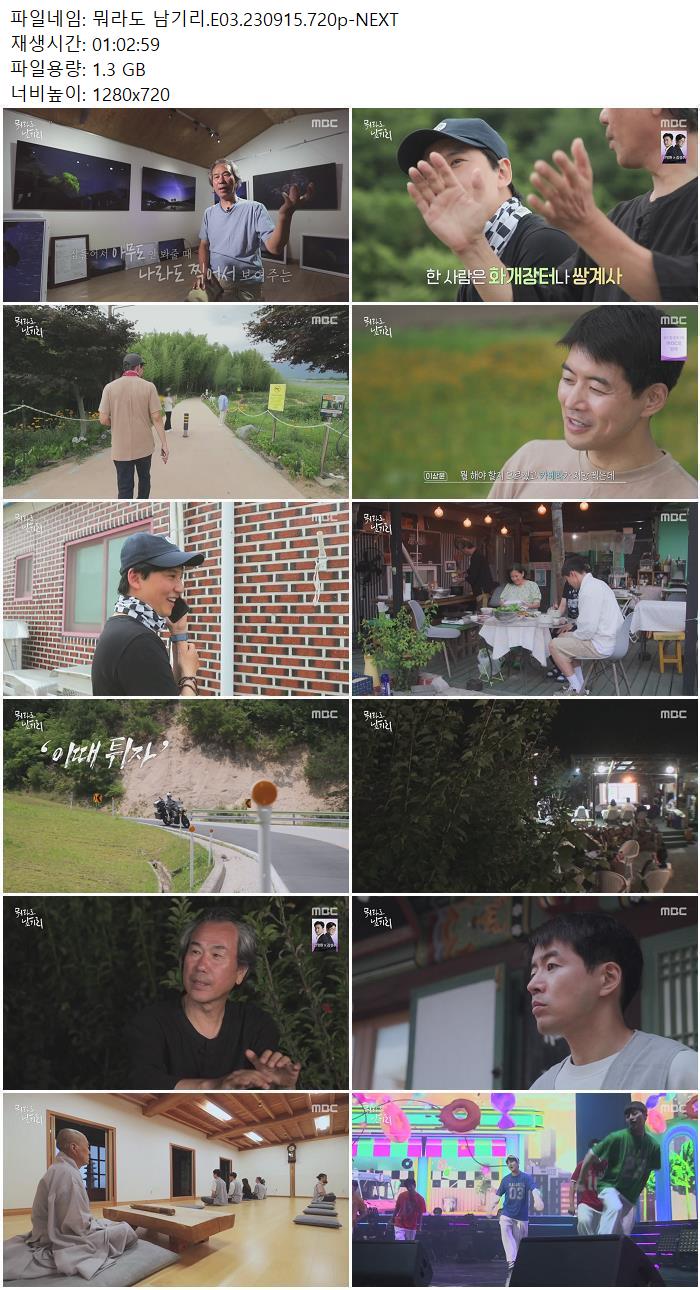 | 뭐라도 남기리.E03.230915.720p-NEXT.mp4 | 1.3 G | - | 1280x720 |