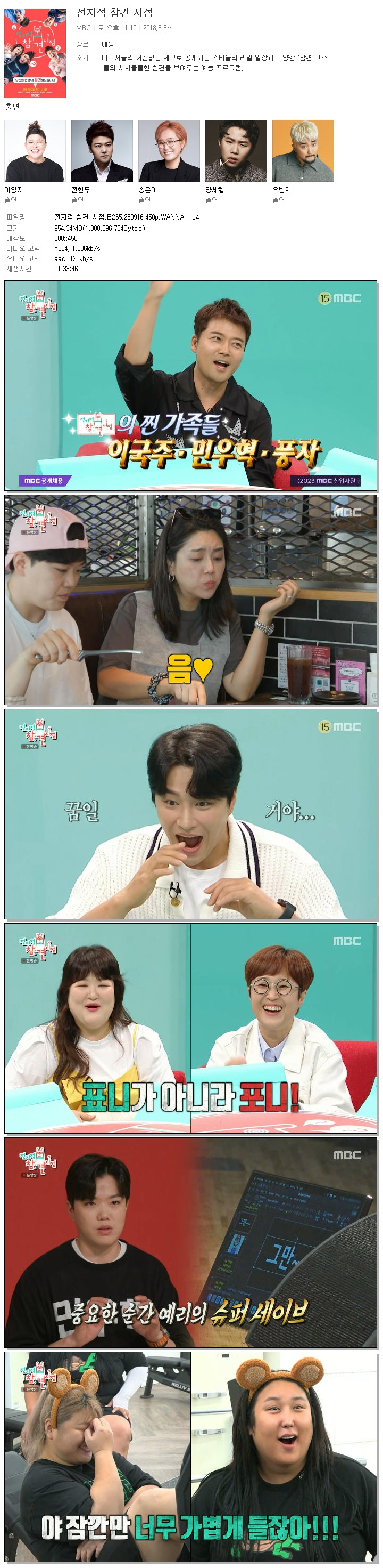 | 전지적 참견 시점.E265.230916.450p.WANNA.mp4 | 954.3 M | 01:33:46 | 800x450 |