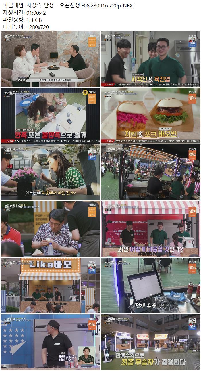 | 사장의 탄생 - 오픈전쟁.E08.230916.720p-NEXT.mp4 | 1.3 G | - | 1280x720 |