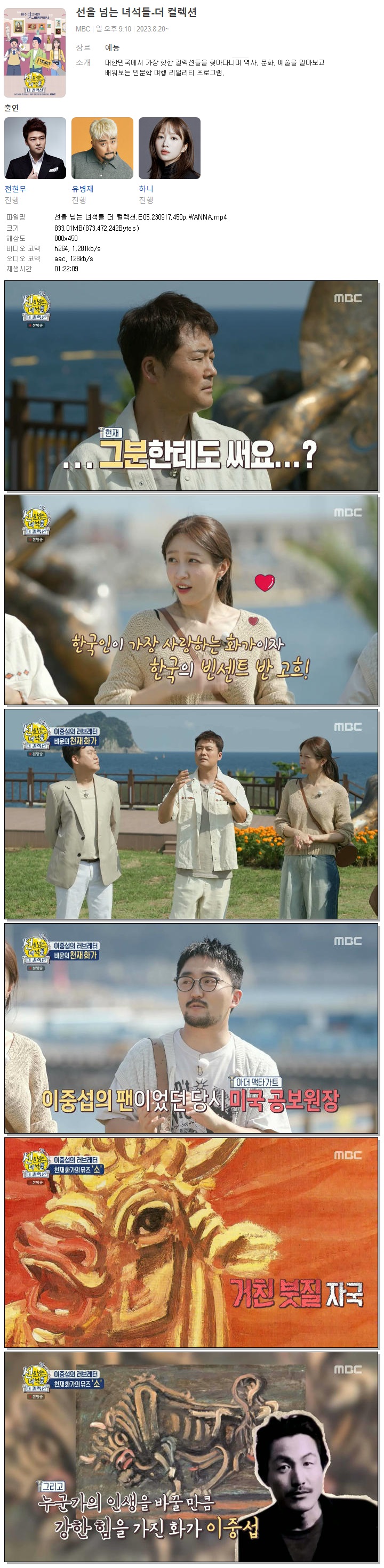 | 선을 넘는 녀석들 더 컬렉션.E05.230917.450p.WANNA.mp4 | 833 M | 01:22:09 | 800x450 |