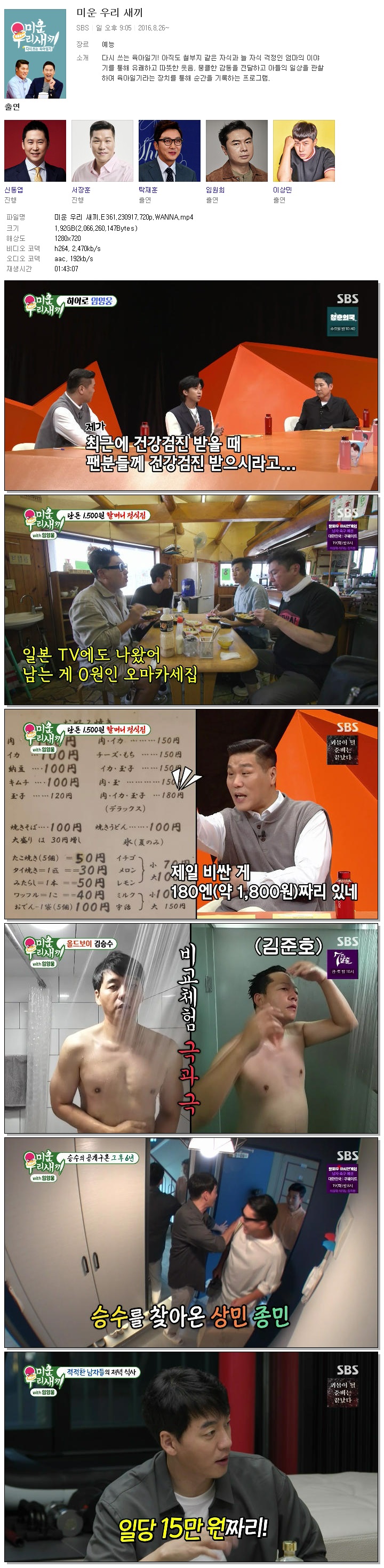 미운 우리 새끼.E361.230917.720p.WANNA.mp4 1.9 G 01:43:07 1280x720