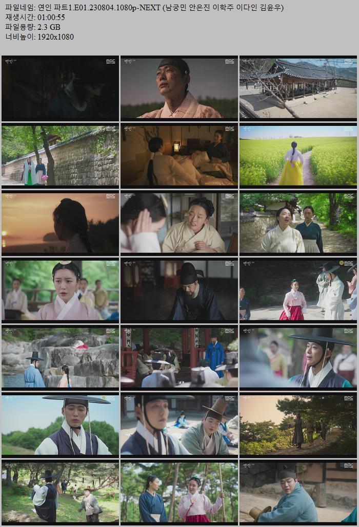 | 연인 파트1.E01.230804.1080p-NEXT (남궁민 안은진 이학주 이다인 김윤우).mp4 | 2.3 G | - | 1920x1080 |