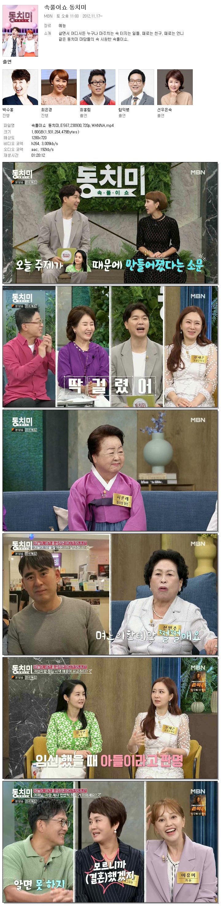 속풀이쇼 동치미.E567.230930.720p.WANNA.mp4 1.8 G 01:20:12 1280x720