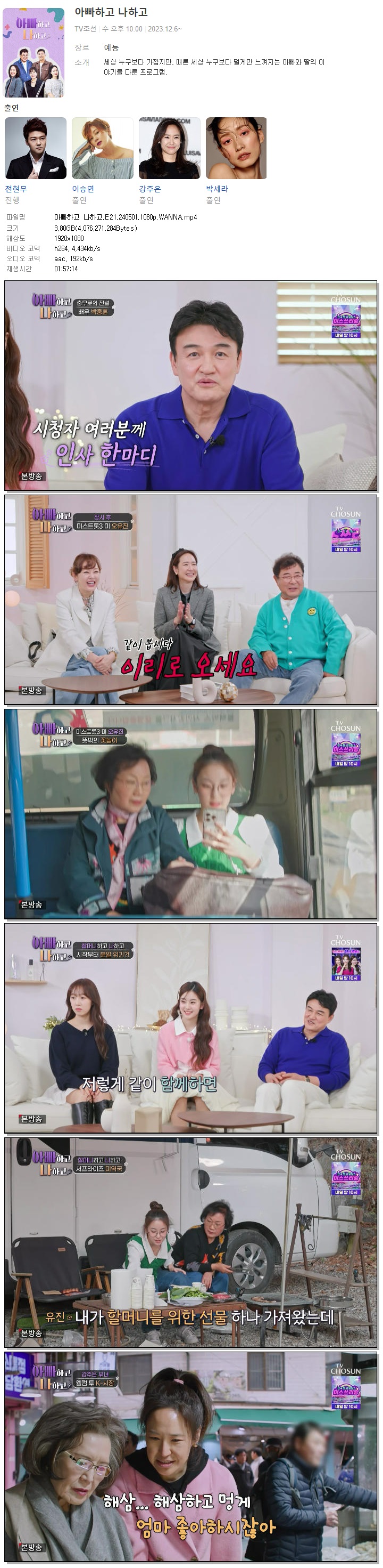 | 아빠하고 나하고.E21.240501.1080p.WANNA.mp4 | 3.8 G | 01:57:14 | 1920x1080 |