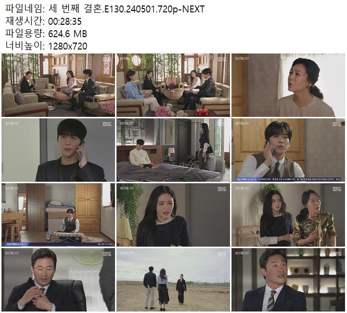 | 세 번째 결혼.E130.240501.720p-NEXT.mp4 | 624.6 M | - | 1280x720 |