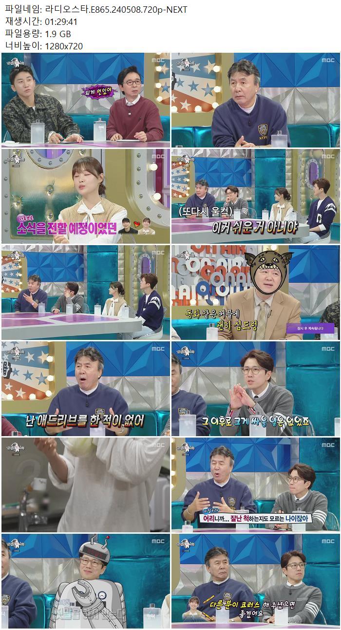 라디오스타.E865.240508.720p-NEXT.mp4 1.9 G - 1280x720