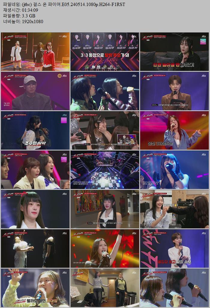 | (jtbc) 걸스 온 파이어.E05.240514.1080p.H264-F1RST.mp4 | 3.3 G | - | 1920x1080 |