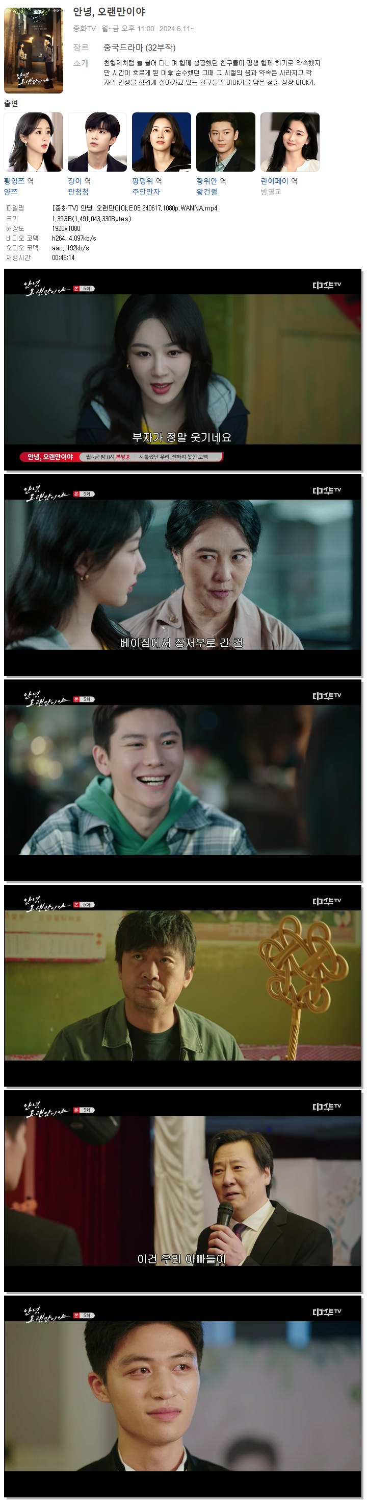 [중화TV] 안녕 오랜만이야.E05.240617.1080p.WANNA 다시보기 토렌트