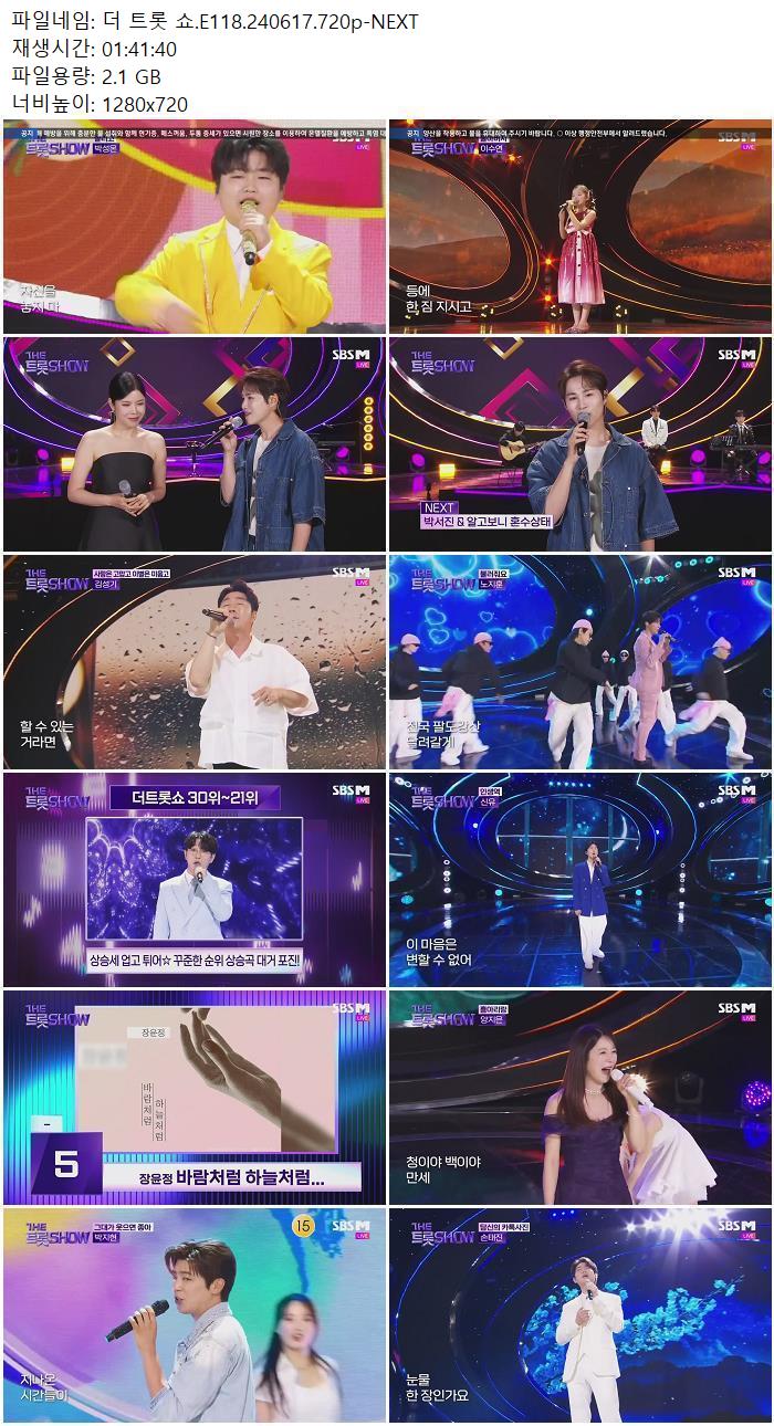 | 더 트롯 쇼.E118.240617.720p-NEXT.mp4 | 2.1 G | - | 1280x720 |