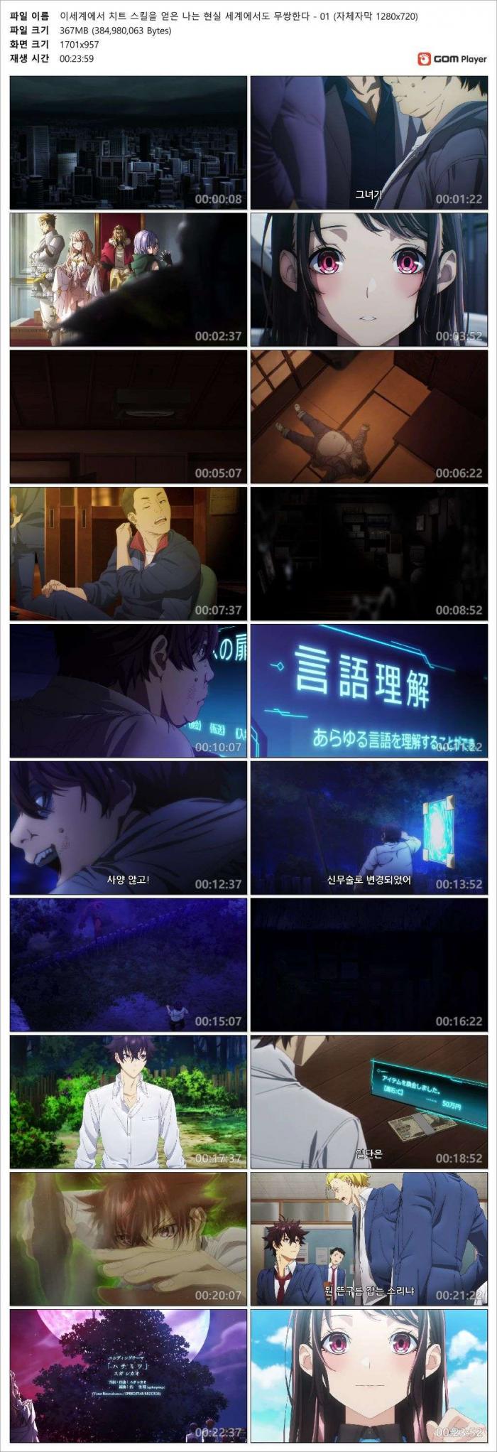 | 이세계에서 치트 스킬을 얻은 나는 현실 세계에서도 무쌍한다 - 01 (자체자막 1280x720).mp4 | 367.1 M | - | 1280x720 |