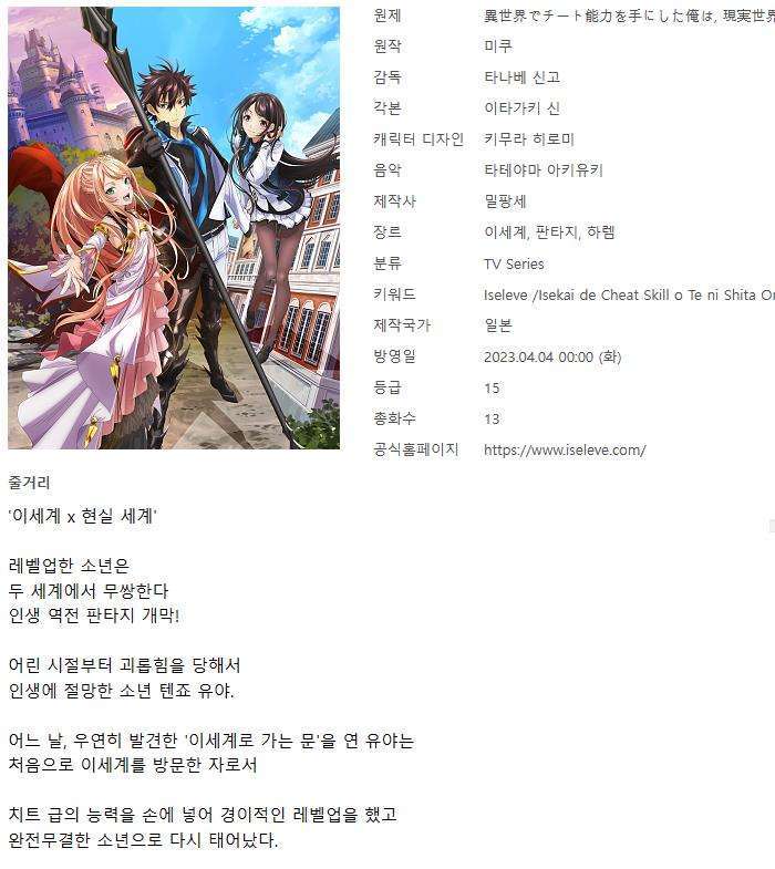 이세계에서 치트 스킬을 얻은 나는 현실 세계에서도 무쌍한다 2023 [완] 다시보기 토렌트