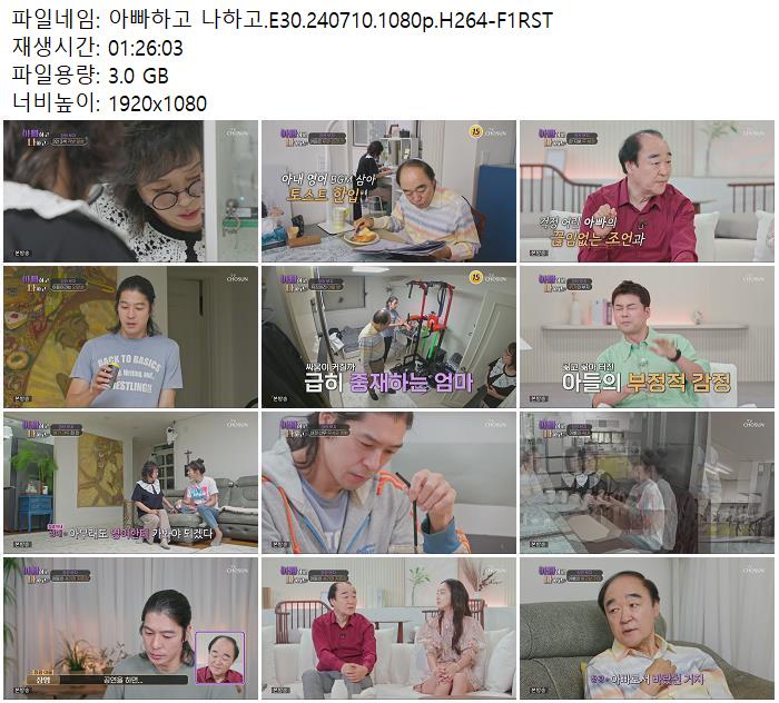 | 아빠하고 나하고.E30.240710.1080p.H264-F1RST.mp4 | 3 G | - | 1920x1080 |